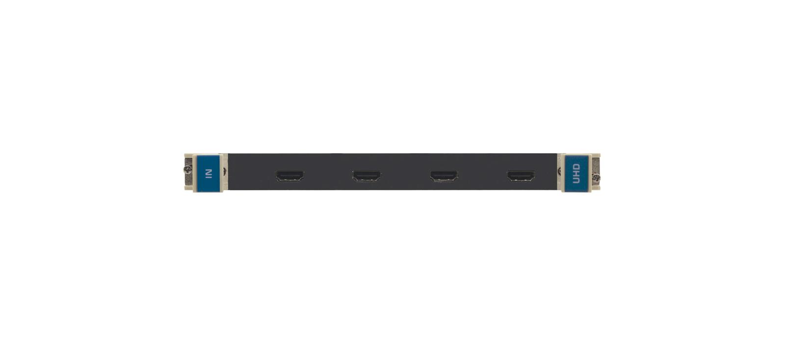 UHD−IN4−F32 is a four−channel 4K@60Hz (4:2:0) HDMI input card for the VS−3232DN−EM Modular Multi−Format Digital Matrix Switcher. The UHD−IN4−F32 inputs four HDMI signals into the chassis.