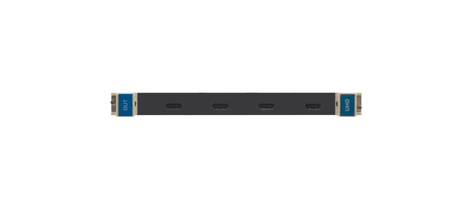 UHD−OUT4−F32 is a four−channel 4K@60Hz (4:2:0) HDMI output card for the VS−3232DN−EM Modular Multi−Format Digital Matrix Switcher. UHD−OUT4−F32 outputs four HDMI signals from the chassis.