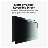 The privacy screen features a matte finish on one side to reduce fingerprints and glare, while the other side is glossy for clearer viewing. Choose the side that best suits your needs.