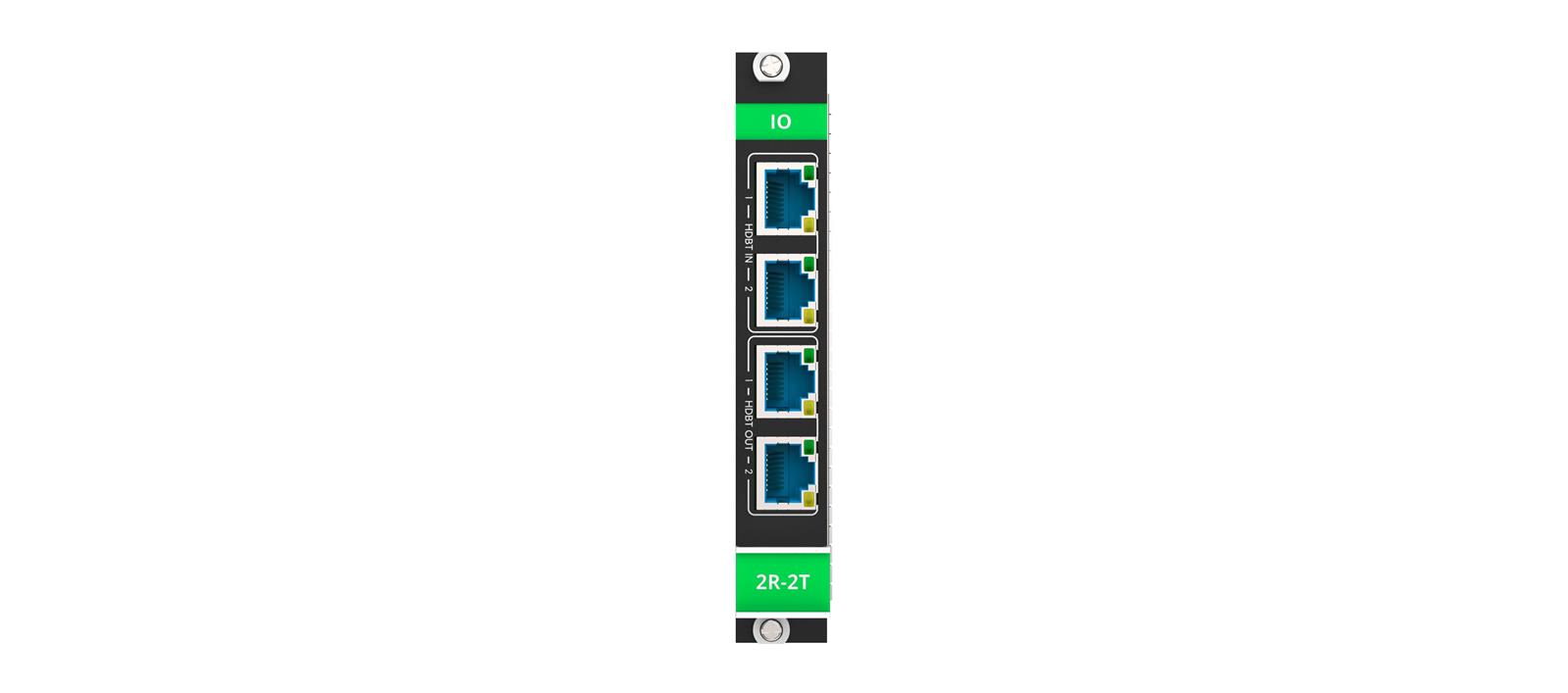 MC3−2R−2T is part of Kramer’s high−end modular matrixes family of solutions. It is a high−performance two−port HDBaseT 3 input and two−port HBaseT 3 output card which is part of the compatible modular matrices multi−signal cards family. One or more MC3−2R−2T units can flexibly occupy any of the matrix card slots. Its input signals are independently switched by the modular matrix to any of the matrix output ports, and any matrix input signals are independently switched to its scaling output ports.