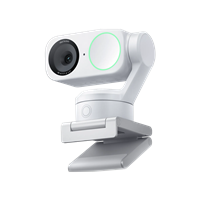 The gimbal physically pans and tilts to follow your movements around the room, keeping everyone in frame.