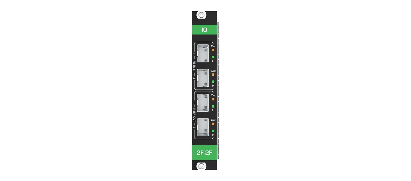 MC3−2F−2F is a high−performance two−port input and two−port output fiber card which is part of the compatible modular matrices multi−signal cards family. MC3−2F−2F can flexibly occupy any of the matrix card slots. Its input signals are independently switched by the modular matrix to any of the matrix output ports, and any matrix input signals are independently switched to its output ports.