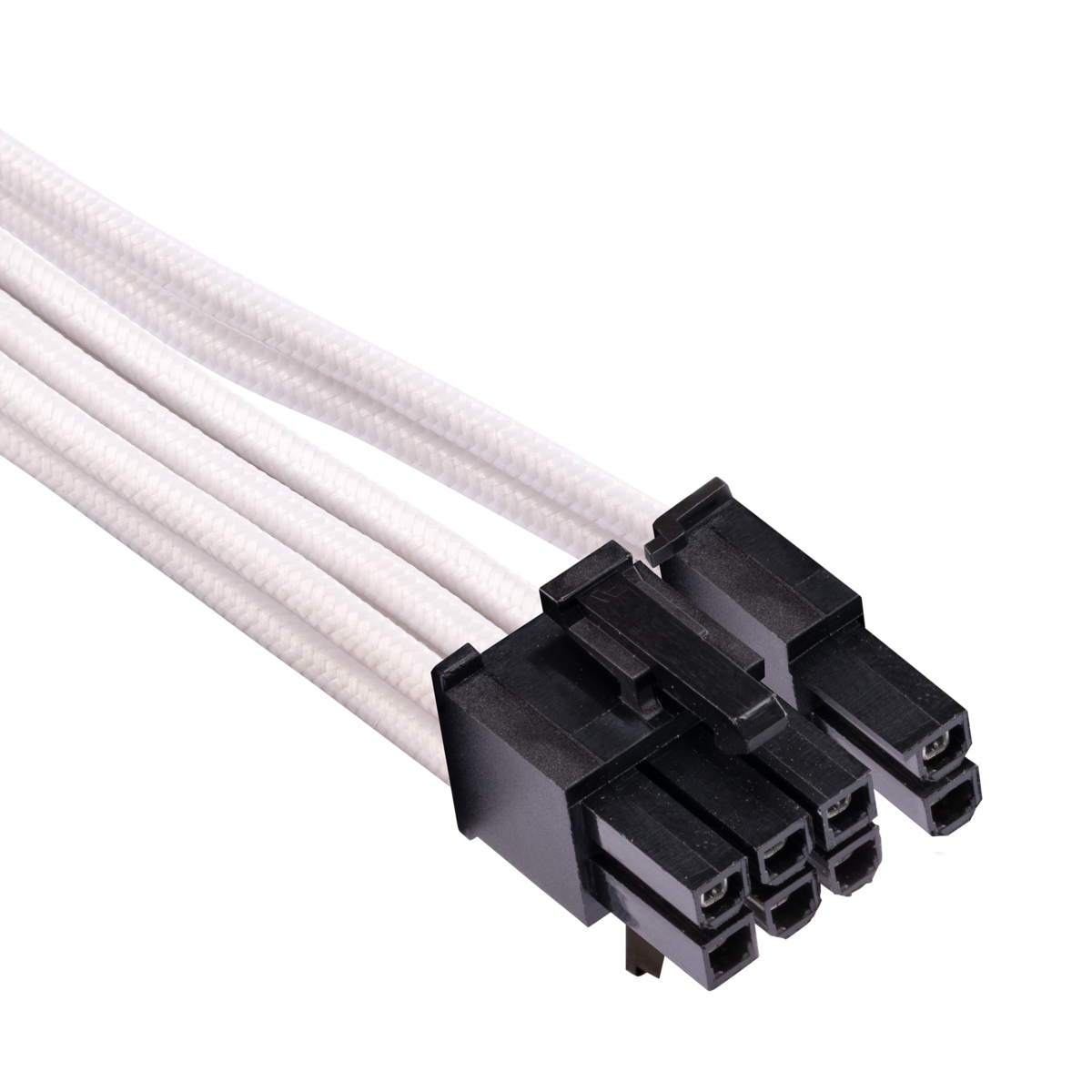 The CORSAIR Premium Individually Sleeved PCIe Type 4 Gen 4 cables combine premium paracord sleeving and a heatshrink-less finish with wide compatibility for CORSAIR Type 4 Power Supplies.