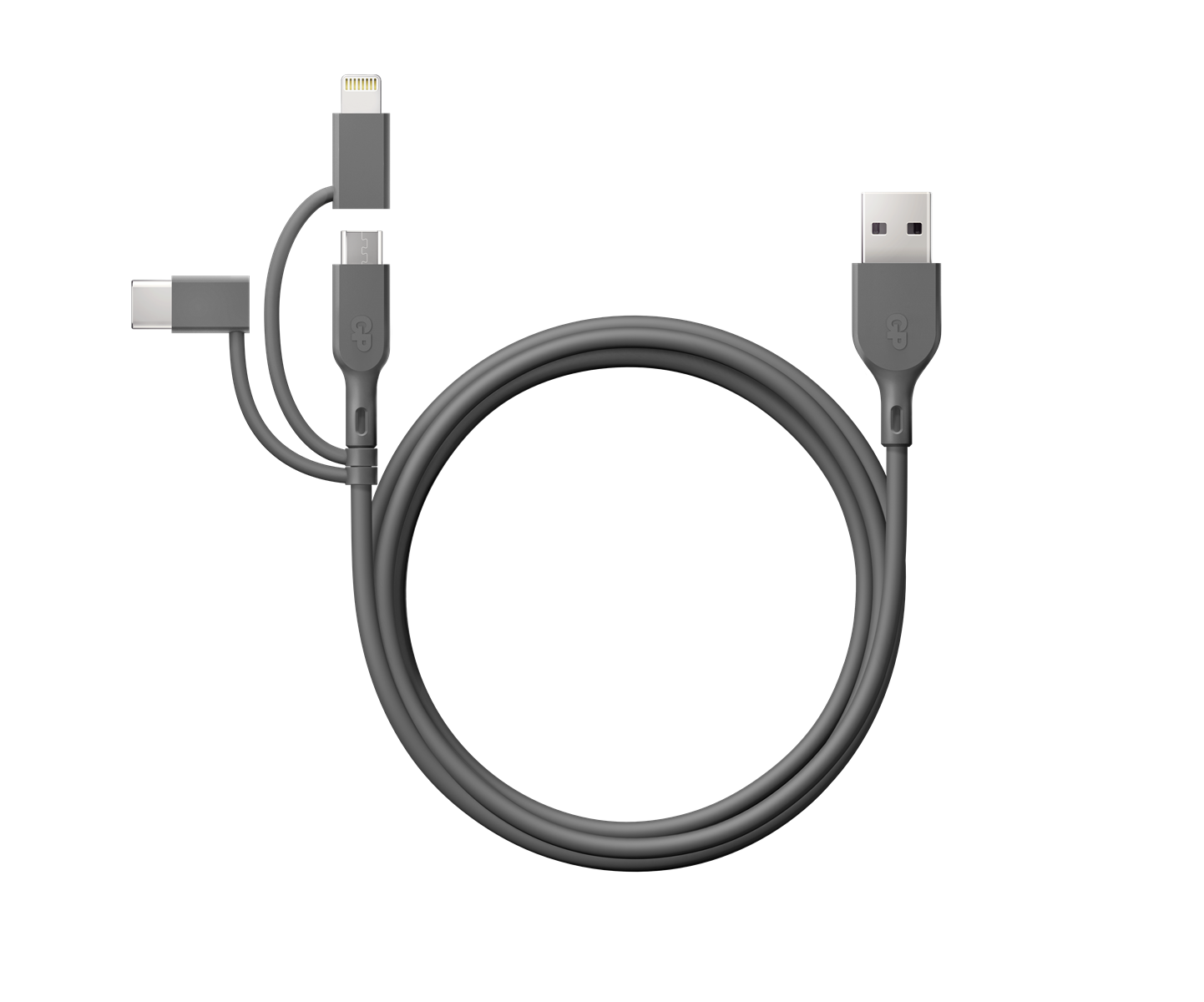 Charge & Sync-kabeln från GP är den perfekta kabeln för daglig användning. Kabeln är tillverkad av böjligt material som gör att den kan sträckas och böjas över 10 000 gånger utan att gå av. Med de medföljande adaptrarna blir det enklare än någonsin att ladda olika enheter.