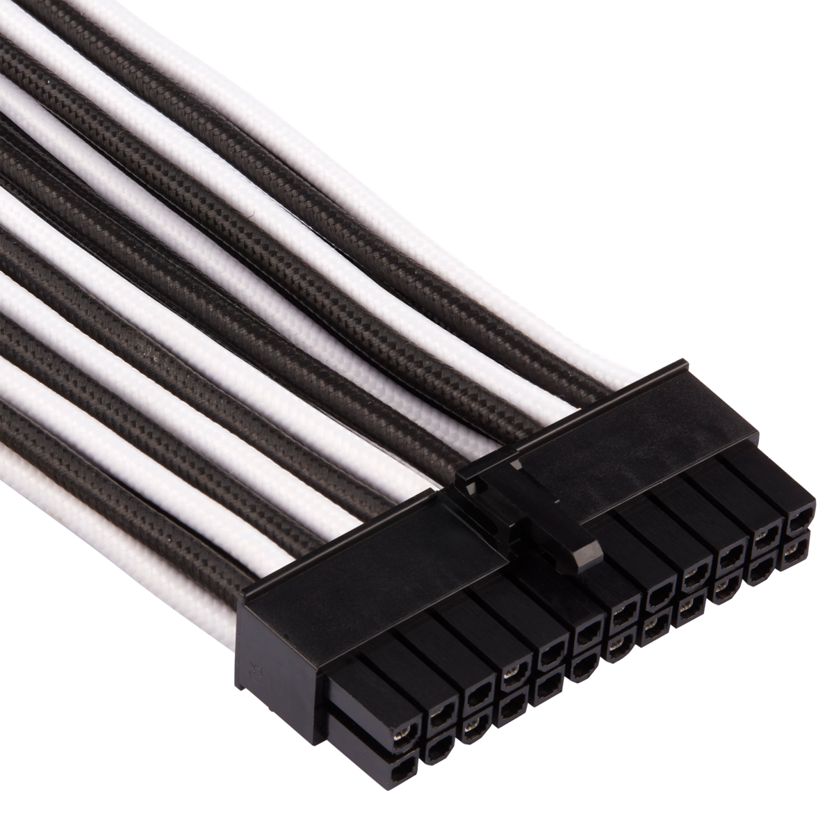 The CORSAIR Premium Individually Sleeved Type 4 Gen 4 ATX 24-Pin cable combines premium paracord sleeving and a heatshrink-less finish with wide compatibility for CORSAIR Type 4 Power Supplies.