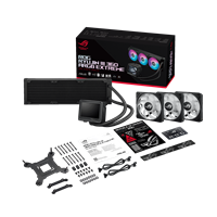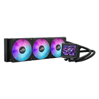 ROG Ryujin III 360 ARGB Extreme all-in-one liquid CPU cooler with Asetek’s Emma Gen8 V2 pump; thickened magnetic ROG ARGB fans for high airflow and static pressure with noise optimization; 3.5" LCD for hardware monitoring & custom GIFs