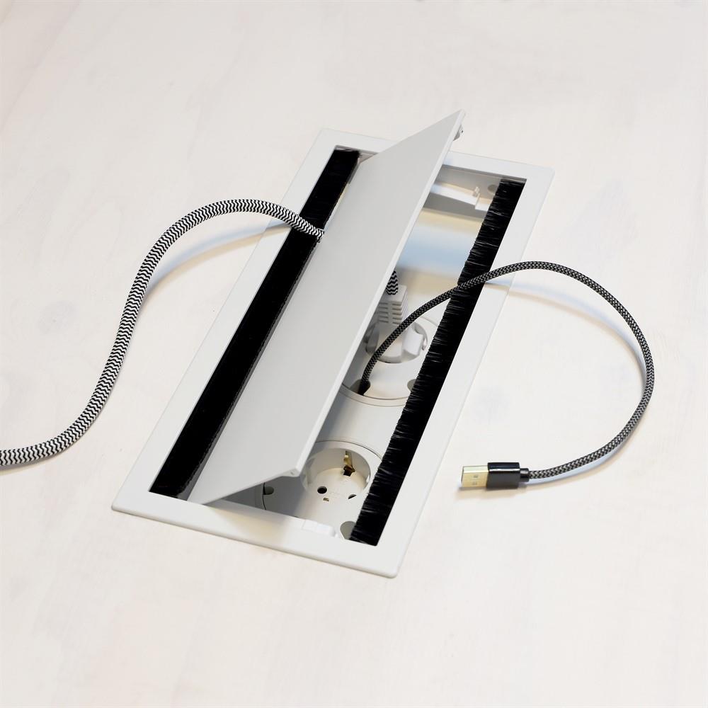A complete package that makes it easy to create a stylish and functional solution for the conference table. The openable lid provides convenient access from both sides, and the spacious compartment offers plenty of room for outlets and cables. The included textile bag effectively and discreetly hides hanging cables.