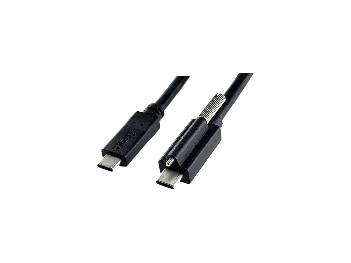 The cable is available in two configurations: one is a USB-C to USB-C male without a locking mechanism, while the other features a locking mechanism on one connector side to ensure secure connections in critical applications. The locking screw mechanism adheres to USB-IF standards and is compatible with a range of devices, including TiGHT AV USB-C devices that support locking connectors.