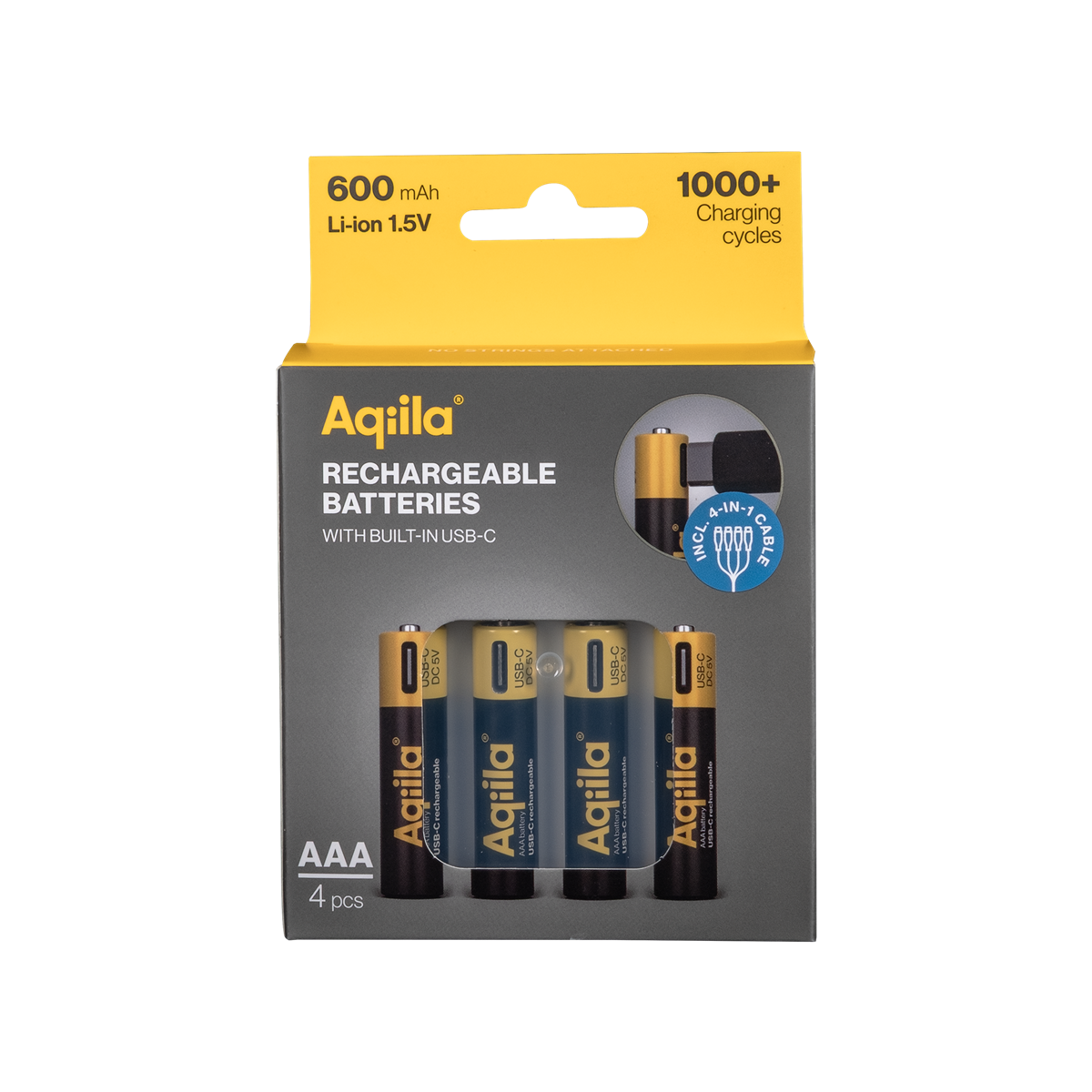 Aqiila Uppladdningsbart USB-C Lithium batteri AAA 1,5V 4-pack