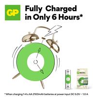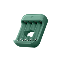 En pålitlig batteriladdare. Denna fyrfacksbatteriladdare kan ladda upp till fyra AA/AAA uppladdningsbara batterier på 6 timmar. Med LED-indikator som visar batteriets laddningsstatus, intelligent funktion för att upptäcka defekta batterier och automatisk avstängning för att förhindra överladdning, är dina batterier alltid redo när du behöver dem.