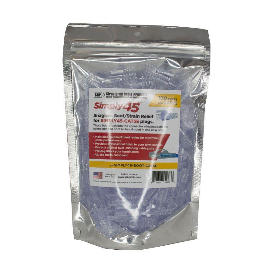 SIMPLY45 SNAGLESS BOOT/STRAIN RELIEF FOR SIMPLY45-CAT5E PLUGS- CLEAR COLOR- 100 PIECES PER BAG