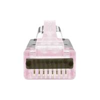 Simply45® ProSeries Pass Through RJ45 Mod Plug - Shielded External Ground for 23AWG Solid, PE Insulated Cat6 STP, Hi/Lo Stagger, Wire Conductors 1.10mm – 1.20mm (0.043” – 0.047”), 2pc Plug with CAP45™, Bar45™ Load Bar, Max Cable OD 8.0mm (0.315″), UL94 V0 Commercial Rated, Red Tint – 50pcs/Plastic Jar